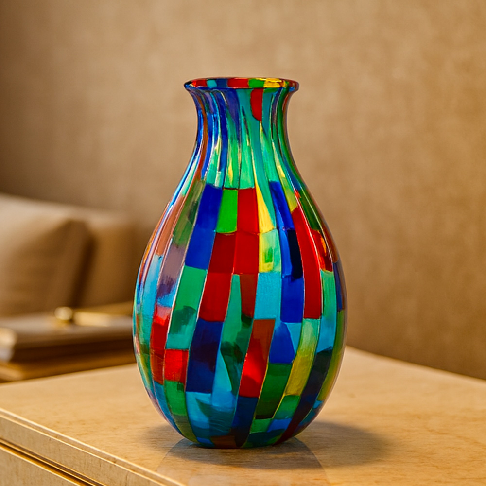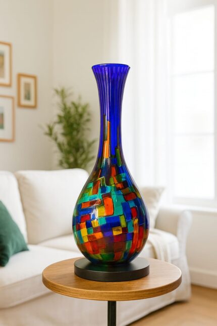 Tato váza je mistrovským dílem z ručně vyráběného muránského skla, v němž se snoubí světlo, barvy a italská duše.