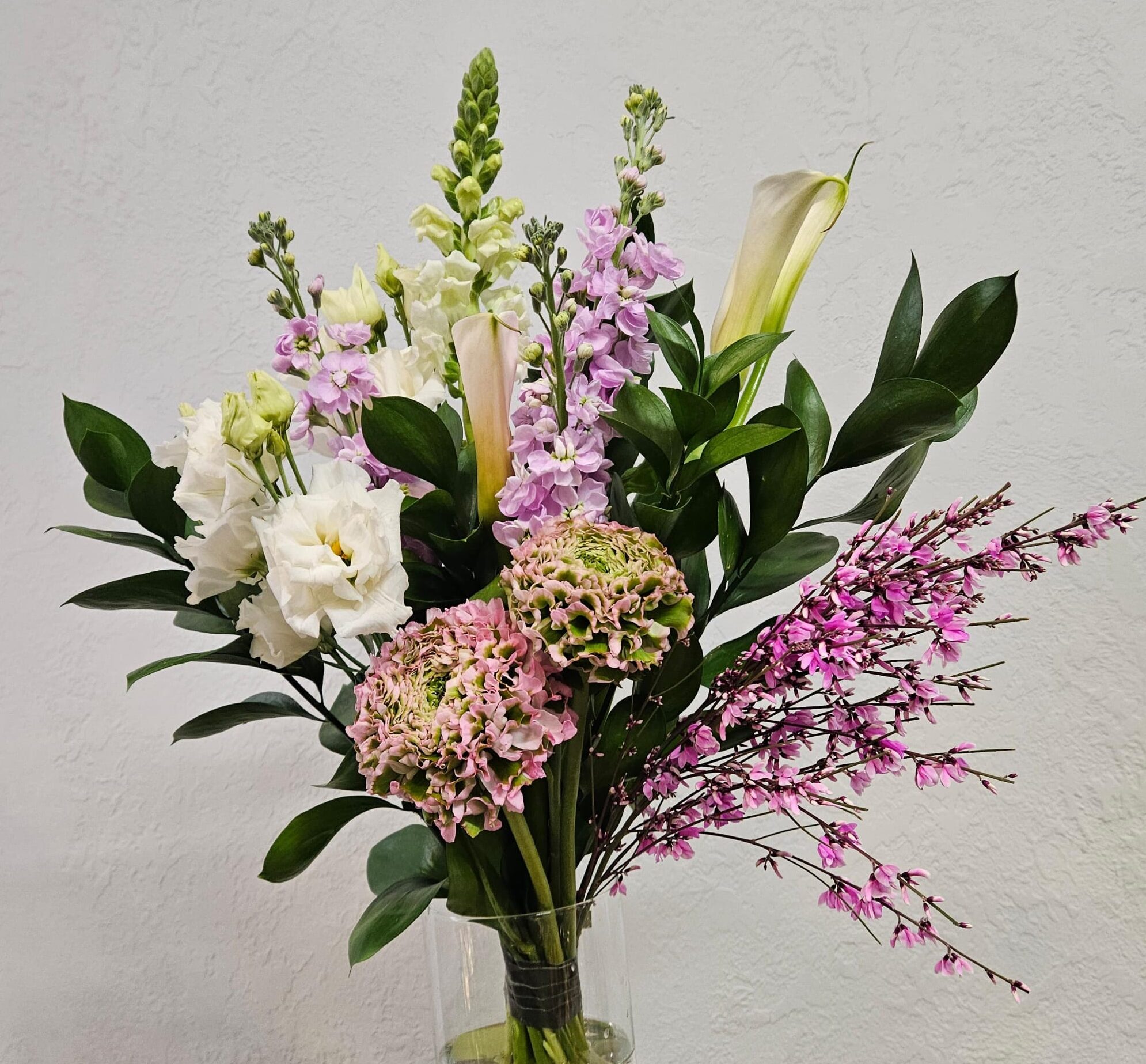 Květiny se mohou mírně lišit dle sezónní dostupnosti, celkový styl a barevnost zůstávají zachovány.
