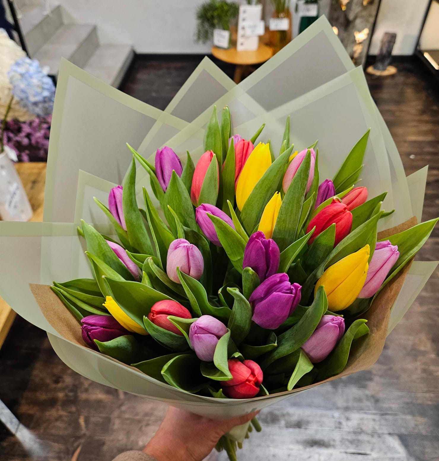Nabízíme krásné tulipány od 3 ks. Na obrázku je 29 kusů.